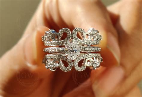 When it comes to choosing the right enhancer set, there are a few factors to consider. First, you want to make sure that the set includes rings that fit your engagement and wedding rings. If the set includes a stackable ring, make sure that it is thin enough to fit between the two rings. Additionally, you want to make sure that the set is made of the same material as your wedding set. For example, if you have a white gold wedding ring, you want to make sure that the enhancer set is also made of white gold.